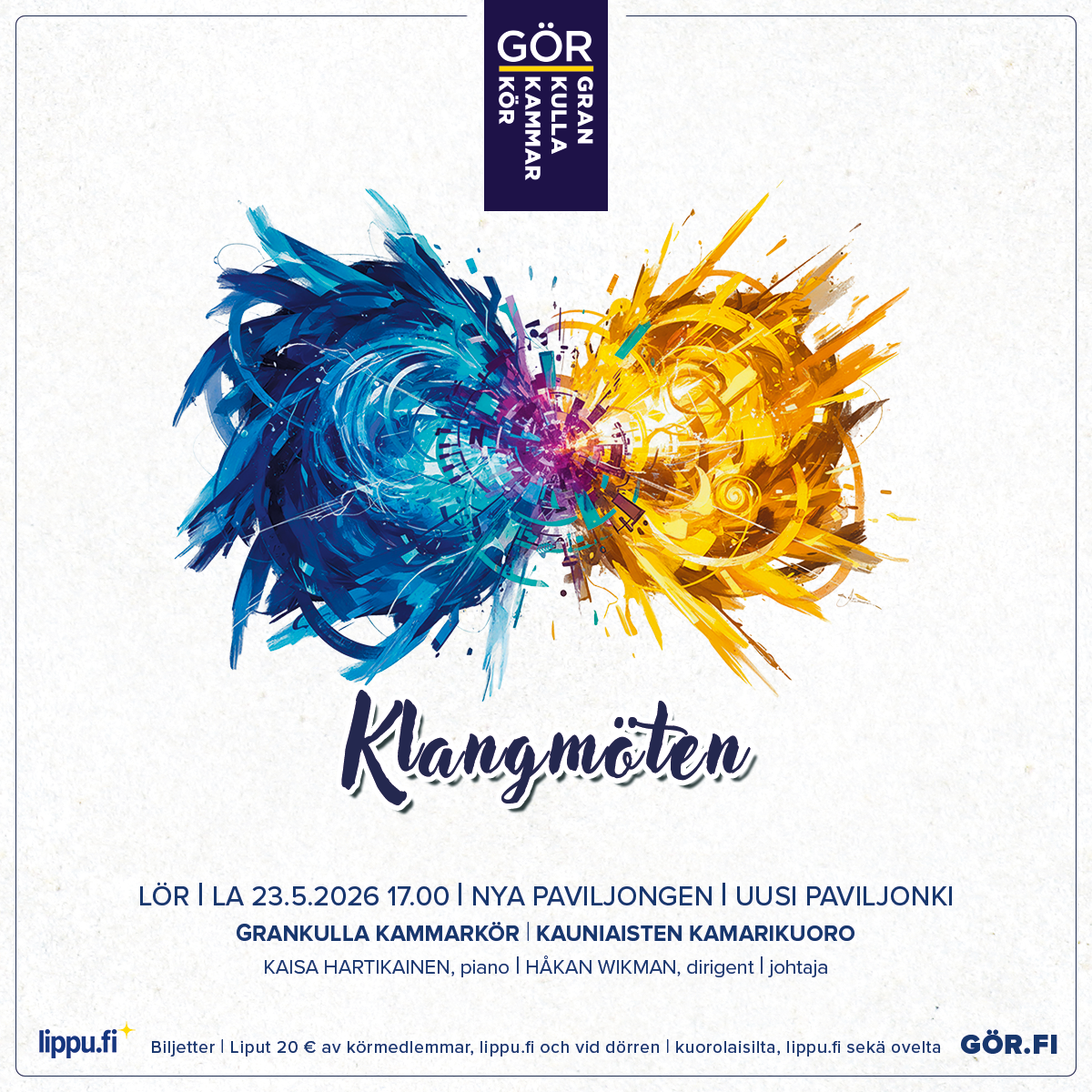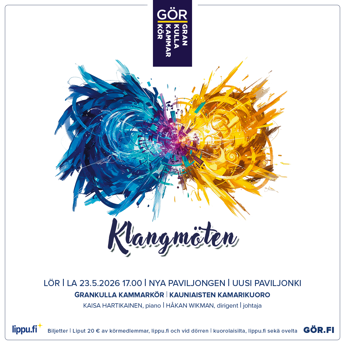 Klangmöten on konsertti, jossa GÖRin rikas perinne kohtaa nykypäivän rytmit ja sointimaailmat. Tässä konsertissa tutut kuoroklassikot kietoutuvat yhteen modernien, svengaavien kappaleiden kanssa uusissa sovituksissa. Lopputuloksena syntyy musiikillinen tila, jossa aikakaudet, tyylit ja ilmaisut saavat kohdata, heijastaa toisiaan ja luoda jotakin aivan omaa.